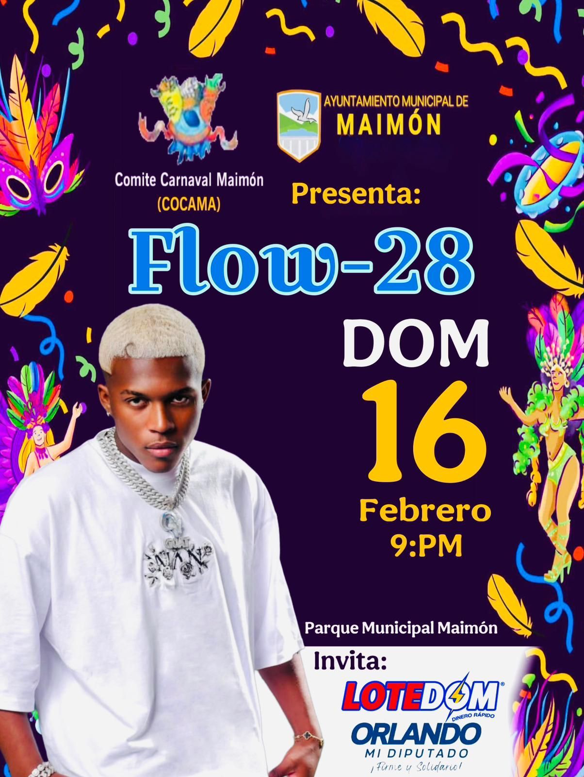 Te esperamos este próximo domingo 16 de febrero, gracias a la Alcaldía Municipal Maimón, su Alcalde Nissael Luzón, y Lotedom, para que disfrutes de Flow 28.