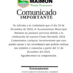 19 diciembre, 2024El Ayuntamiento Municipal Maimón, Invita este próximo lunes 23 de Diciembre, a partir de las 9 Pm, a participar de...