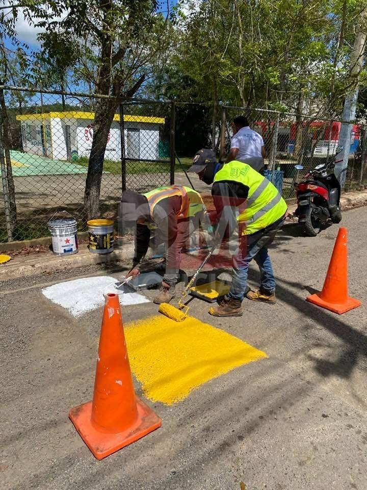 Hoy tocó la señalizacion de gran parte de los reductores de velocidad o policía acostado.