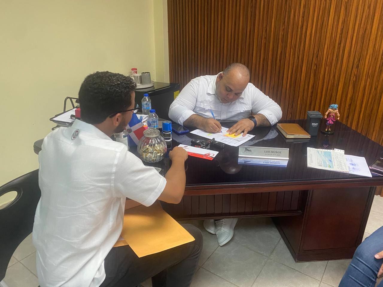 En este preciso momento el Alcalde Nissael Luzón firma los documentos para hacer efectiva la entrega de 2 camiones 2025, 0 Kilómetros.